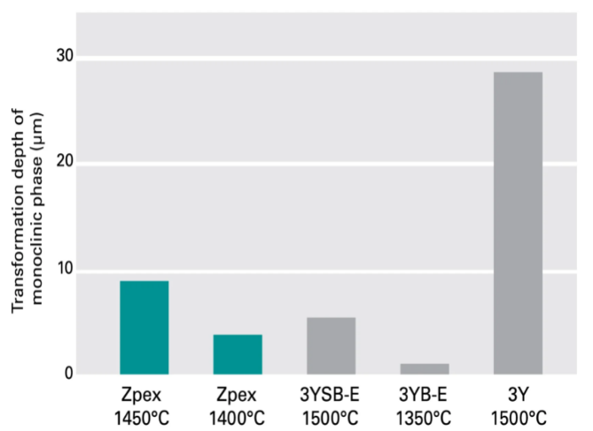A等級(jí)含有3 mol% 氧化釔和 20 wt% 氧化鋁,該產(chǎn)品經(jīng)過(guò)熱等靜壓后具有極高的機(jī)械強(qiáng)度,非常適合生產(chǎn)高強(qiáng)度、高耐水性用途的工業(yè)用零部件。 |